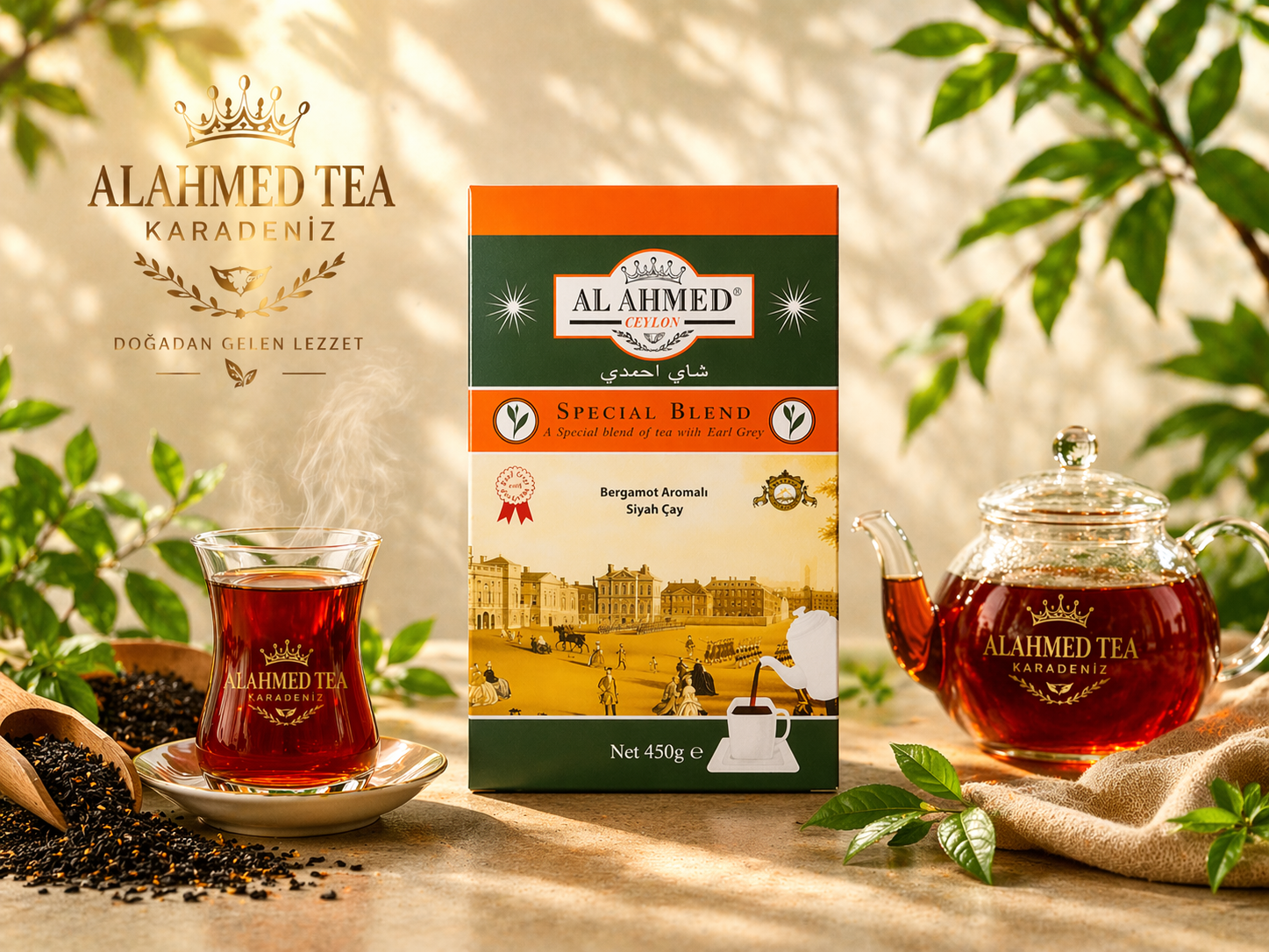 Alahmed Tea Ceylon, klasik siyah çay lezzetini bergamotun ferahlatıcı etkisiyle buluşturarak günün her saatinde keyifle tüketilebilecek özel bir karışım sunar.